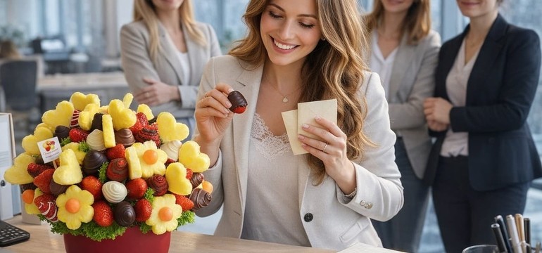 Chutné kytice vám namiešajú ten najšťavnatejší darček – kyticu z čerstvého ovocia, naaranžovanú ako kvet, no úplne jedlú. Sladké jahody, ananásy, hrozno, melón... a k tomu výber kúskov ručne máčaných v kvalitnej čokoláde. Chutné kytice vám namiešajú ten najšťavnatejší darček – kyticu z čerstvého ovocia, naaranžovanú ako kvet, no úplne jedlú. Sladké jahody, ananásy, hrozno, melón... a k tomu výber kúskov ručne máčaných v kvalitnej čokoláde.