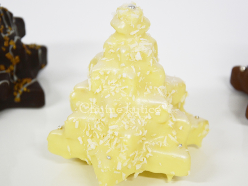 Rozkošný malý stromček na zjedenie! Z ananásu a čokolády. Zdobíme ďalej kokosom, striebornými cukrárskymi guličkami rôznej veľkosti, potravinárskou zlatou alebo striebornou farbou. Ručne pripravené chutné stromčeky balíme do celofánového vrecúška so stuhou. Cena je za jeden kus, výška 7 cm.