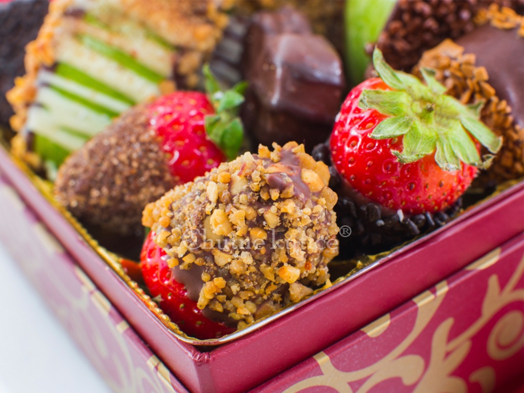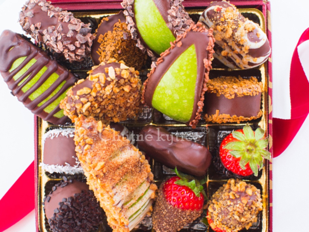 V Chutných kyticiach máme to najlepšie čerstvé ovocie počas celého roka, navyše používame pravú belgickú alebo taliansku čokoládu!