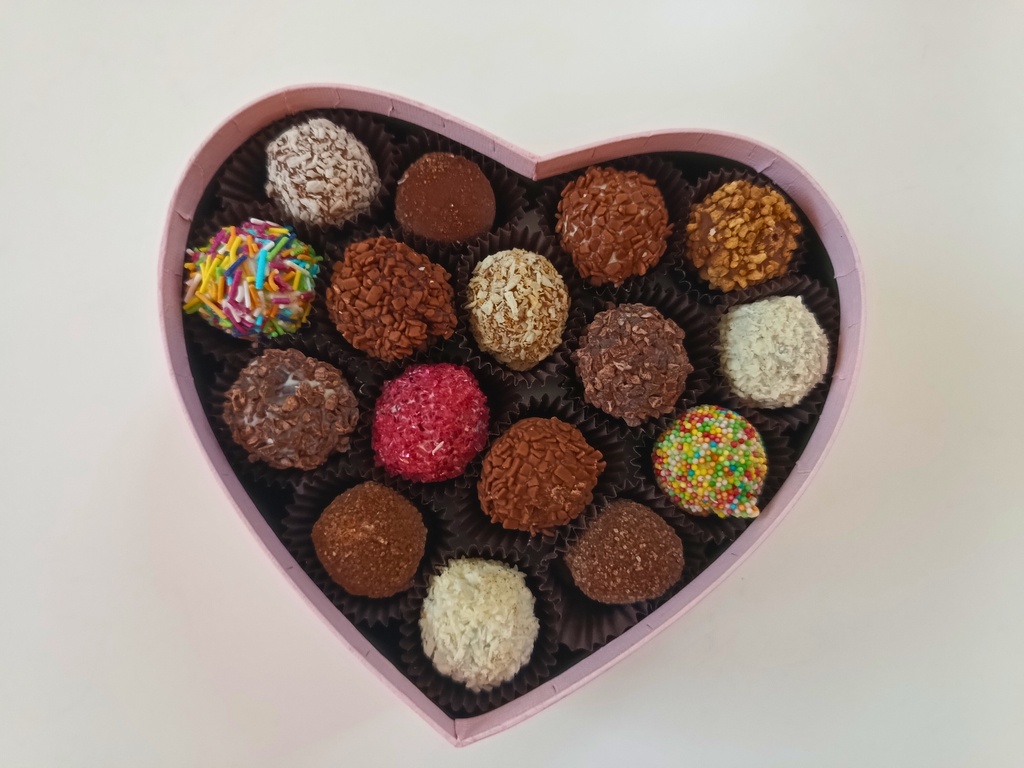Romantický sladký darček, ktorý si môže obdarovaný vychutnávať naozaj dlho. Srdiečko v ružovej, červenej alebo bielej farbe previazané mašľou obsahuje trvanlivé bonbóny vo forme guličiek. Vytvorené sú z belgickej čokolády, sušeného ovocia, kávovej, nugátovej alebo karamelovej plnky.